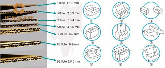 Thùng carton bao gồm hai phần chính: phần bên ngoài là 2 lớp giấy, phần bên trong là lõi giấy. Thông thường, lõi giấy được sản xuất bằng cách uốn lượn theo hình sóng gọi là gợn sóng. Các sóng này có tác dụng kết dính với nhau, giúp tăng độ bền và khả năng chịu lực, chống xuyên thủng.