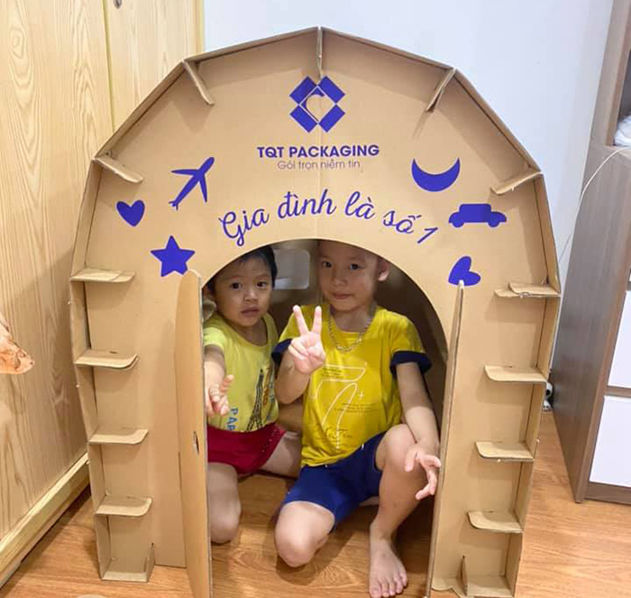 Thùng carton cũ sau khi sử dụng còn có thể được tận dụng để làm đồ chơi cho bé yêu.