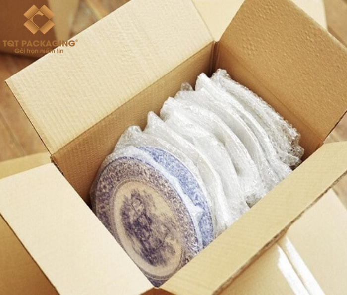 Các sản phẩm dễ vỡ cần được bọc xốp hơi nhiều lớp để đảm bảo chống va đập và tránh vỡ vụn. Sau đó, nên đóng gói sản phẩm vào thùng carton hoặc hộp giấy để bảo vệ toàn bộ sản phẩm trong quá trình vận chuyển.
