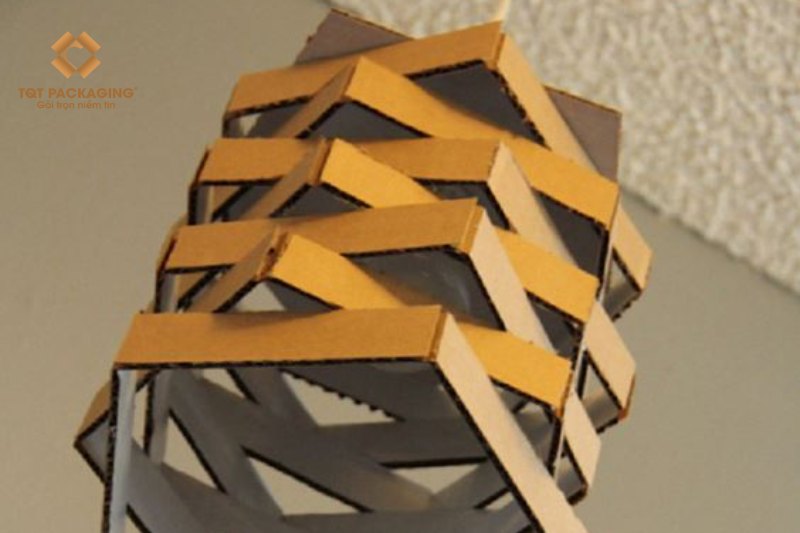 Chỉ cần vài chiếc hộp giấy và thùng carton cũ, bạn có thể sáng tạo tái chế thùng bìa carton thành những chiếc lồng đèn độc đáo. Việc này đơn giản chỉ cần bạn cắt giấy bìa cứng thành những hình que kem, sau đó xếp chúng đan xen lẫn nhau và sử dụng keo để cố định chúng lại. Kết quả là chiếc đèn lồng xinh xắn và sáng tạo.