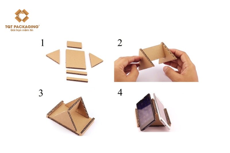 Tận dụng thùng carton để làm khay đỡ điện thoại là một phương pháp đơn giản và hiệu quả trong việc tái chế. Bạn chỉ cần dán chồng các tầng giấy carton lại với nhau. Tiếp theo, đo kích thước của điện thoại và vẽ lên bề mặt thùng carton. Sau đó, thực hiện cắt một lỗ bên trong thùng theo kích thước vừa đo. Nếu cần, bạn có thể cắt nhiều lỗ trên cùng một khay từ giấy carton để đựng nhiều đồ dùng khác nhau. Điều này giúp tối ưu hóa sự sáng tạo và tính tiện ích của sản phẩm tái chế của bạn.