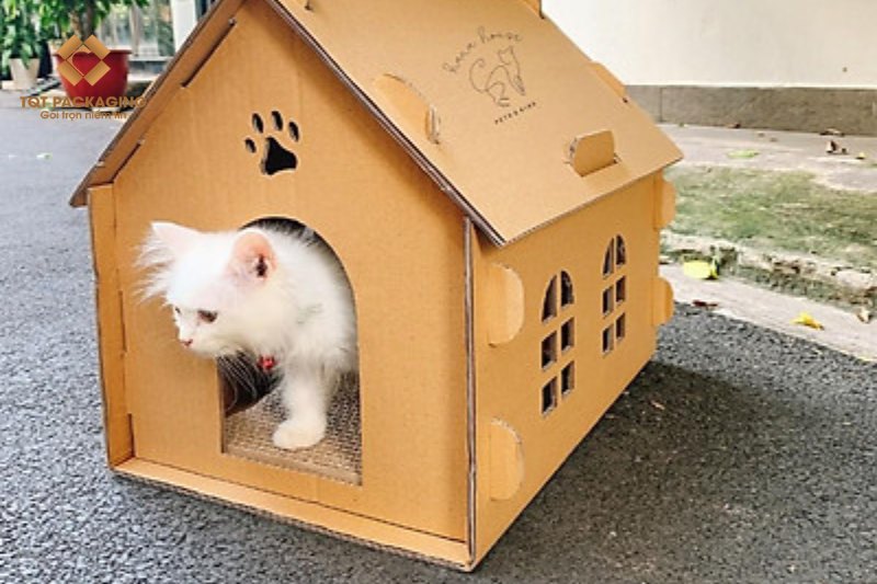 Để tạo ra một không gian riêng tư và thoải mái cho chú cún đáng yêu của bạn, có thể tận dụng thùng carton bìa cứng đã qua sử dụng để làm ngôi nhà cho thú cưng. Bạn có thể trang trí bên ngoài ngôi nhà giấy từ thùng carton bằng việc thêm vào một số họa tiết đáng yêu như khúc xương, bông hoa, và các chi tiết khác.