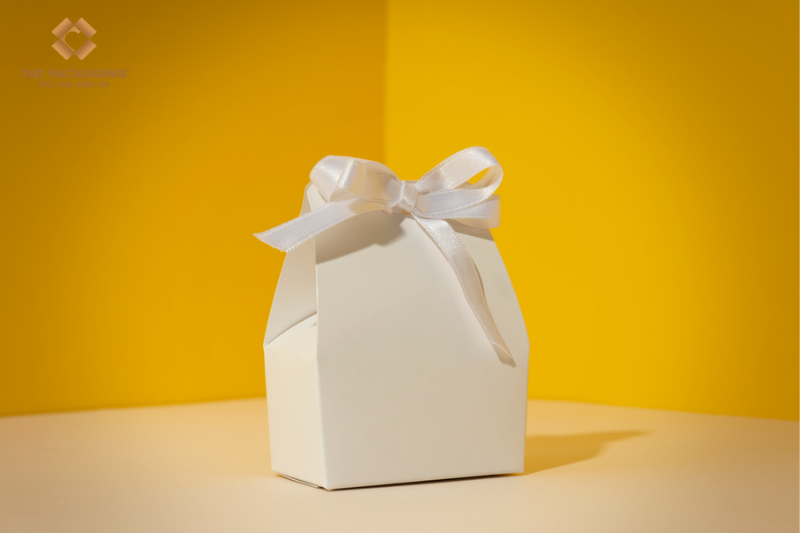 - Các sản phẩm quà tặng thường được bao bọc bằng hộp carton màu trắng để tạo sự sang trọng và đẳng cấp.