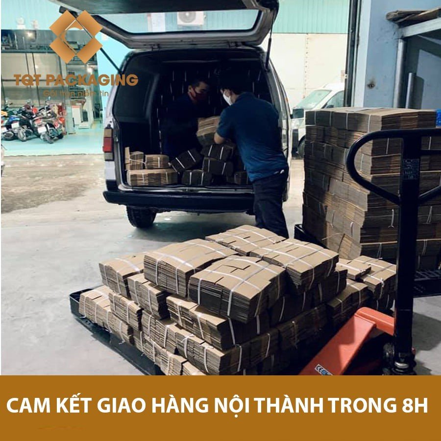 Bao Bì TQT cam kết giao hành nhanh chóng trong vòng 8 tiếng đến tay người dùng kể từ khi chốt đơn với các đơn hàng nội thành. Với hệ thống xe, phương tiện vận chuyển đa dạng, TQT luôn đảm bảo mang sản phẩm đến cho khách hàng một cách nhanh nhất đầy đủ số lượng và chất lượng. Đối với đơn hàng ngoại tỉnh, xưởng cũng hỗ trợ ship cod, vận chuyển hàng ra chành xe,…