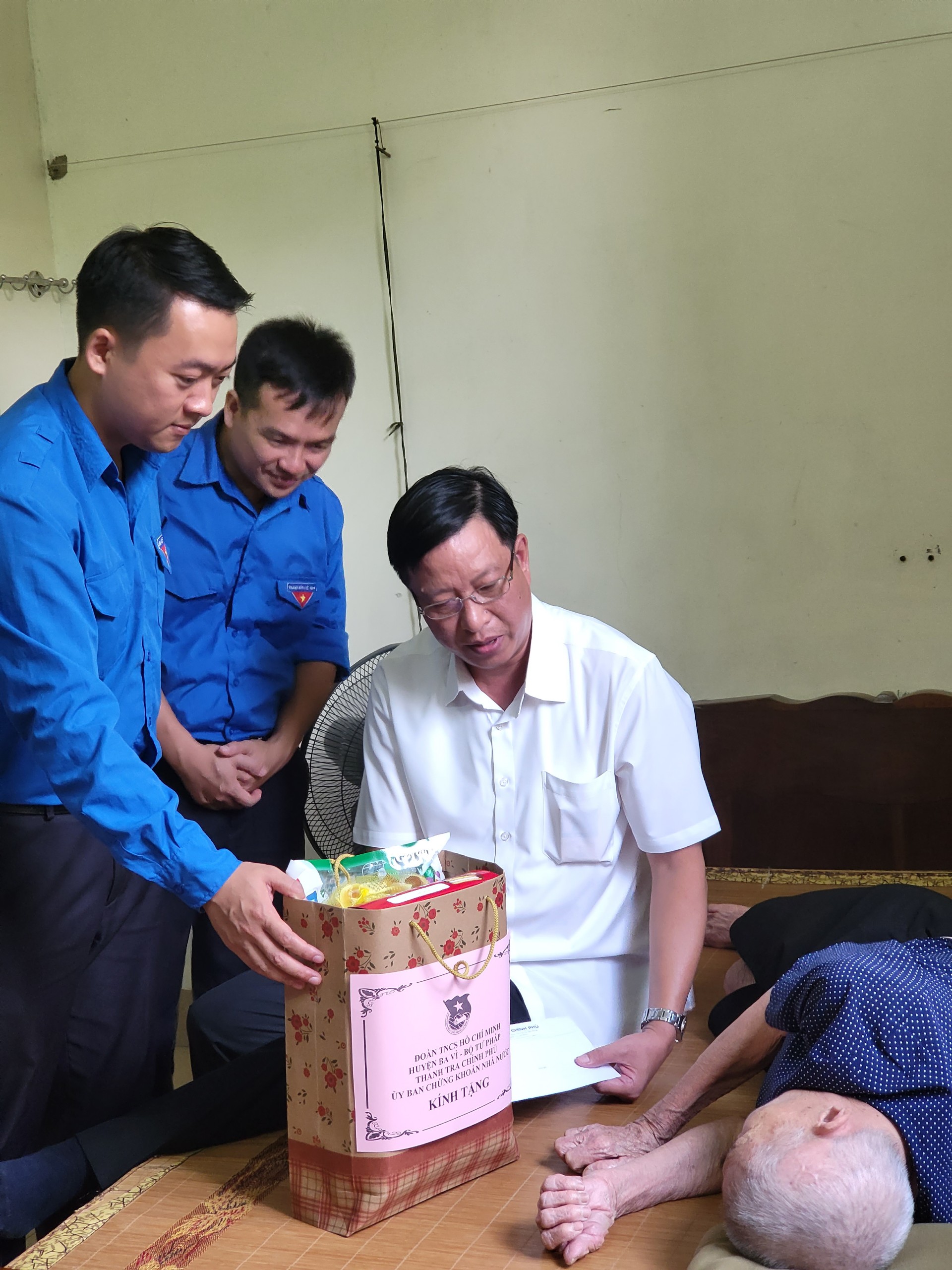Đoàn trao quà tri ân tới gia đình các thương binh.