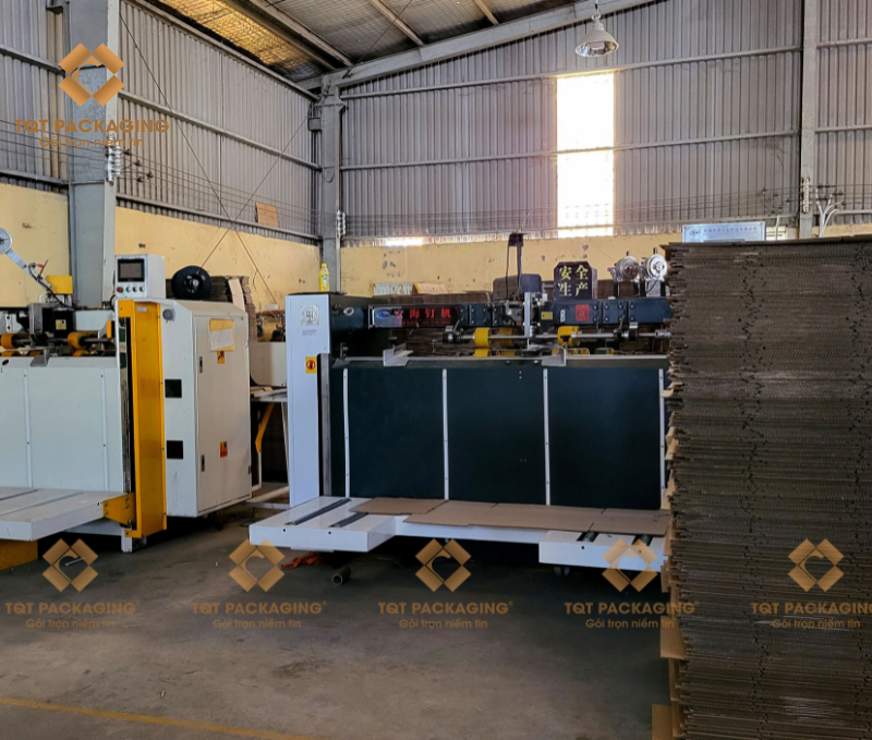 Bao bì TQT tự hào sở hữu những dây chuyền công nghệ tự động hiện đại như dây chuyền sóng 2 lớp, 3 lớp, 5 lớp chạy bằng hơi, dây chuyền máy in ngang 2-4 màu, máy đóng ghim tự động, máy dán tự động,… đảm bảo chất lượng túi đựng trái cây cao cấp, bền đẹp.